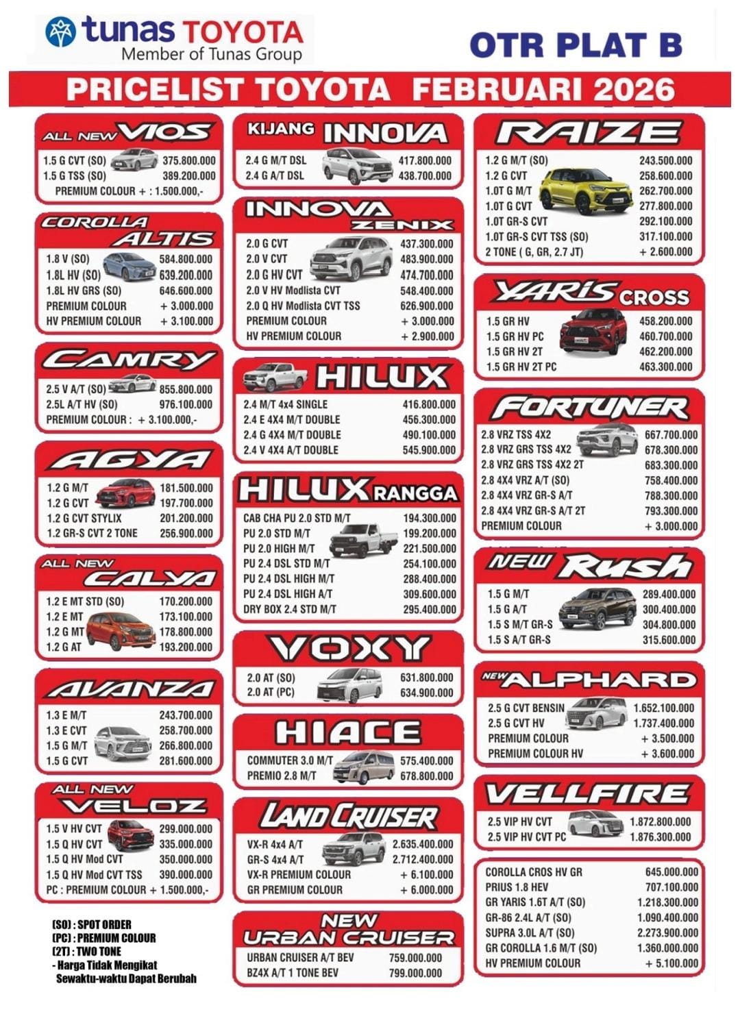 Informasi Promo Terbaru Pembelian Mobil Baru Toyota 2026 berlaku di Jakarta, Depok, Tangerang Dan Bekasi.